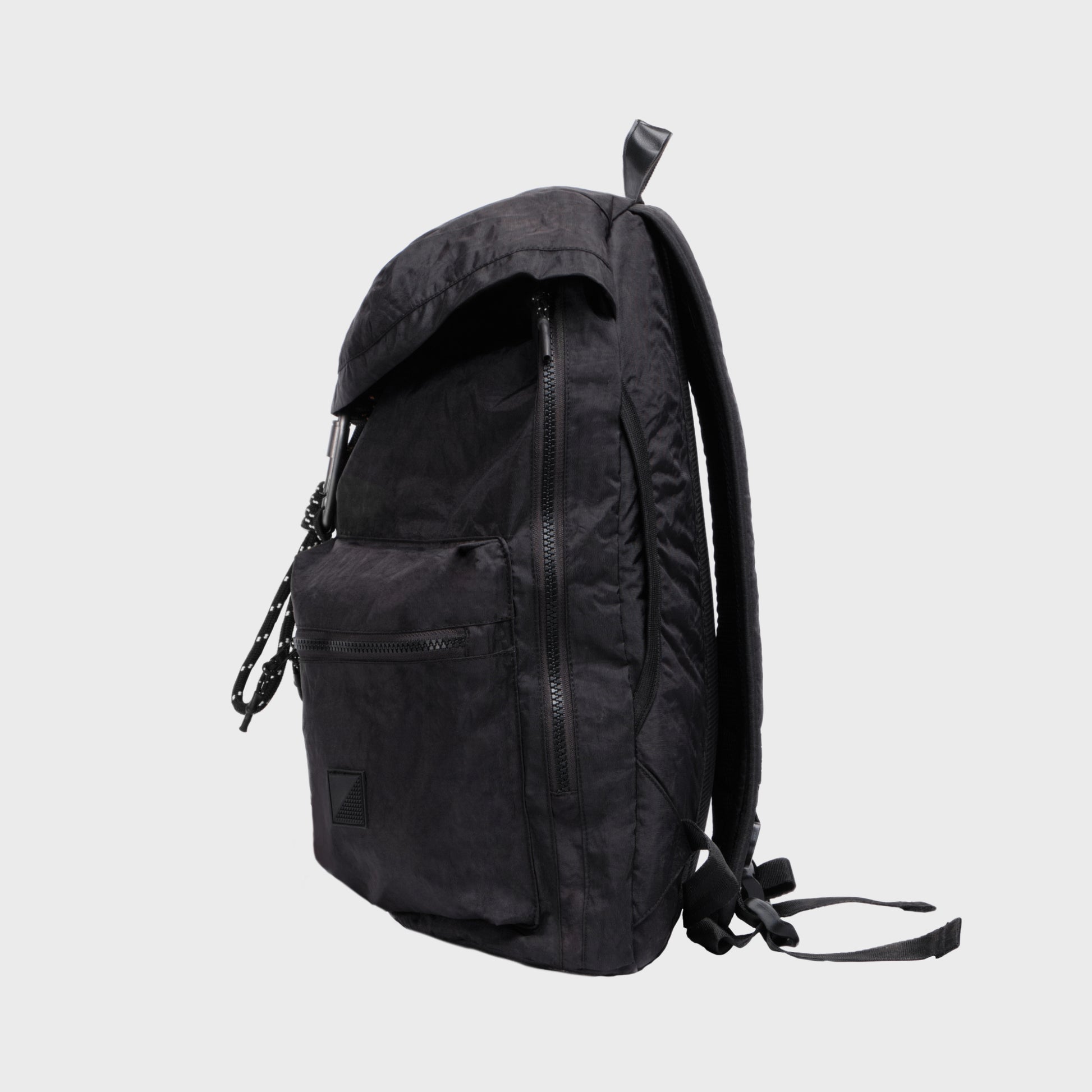 全体に使われるのは、シャリ感があり軽量で、独特なシワ加工が施された耐久性の高い400デニールのポリエステル生地。見た目も触った感触も良くて、しかも軽いという3拍子が揃ったこの生地がアウトドア、ビジネスやスポーツといったジャンルに縛られないスタイリッシュさを作り出しています。