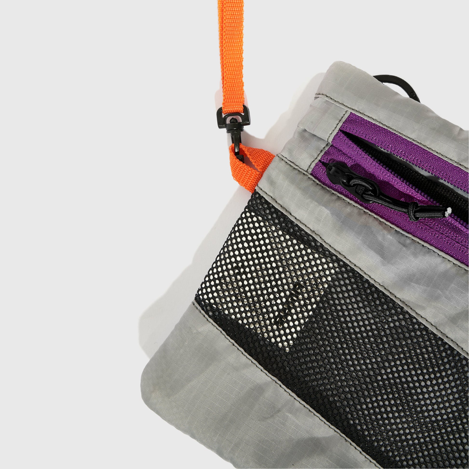 ナイロン素材を使用した<マントラ・サコッシュ>は、頻繁に使用するアイテムを収納できるフロントに2つ