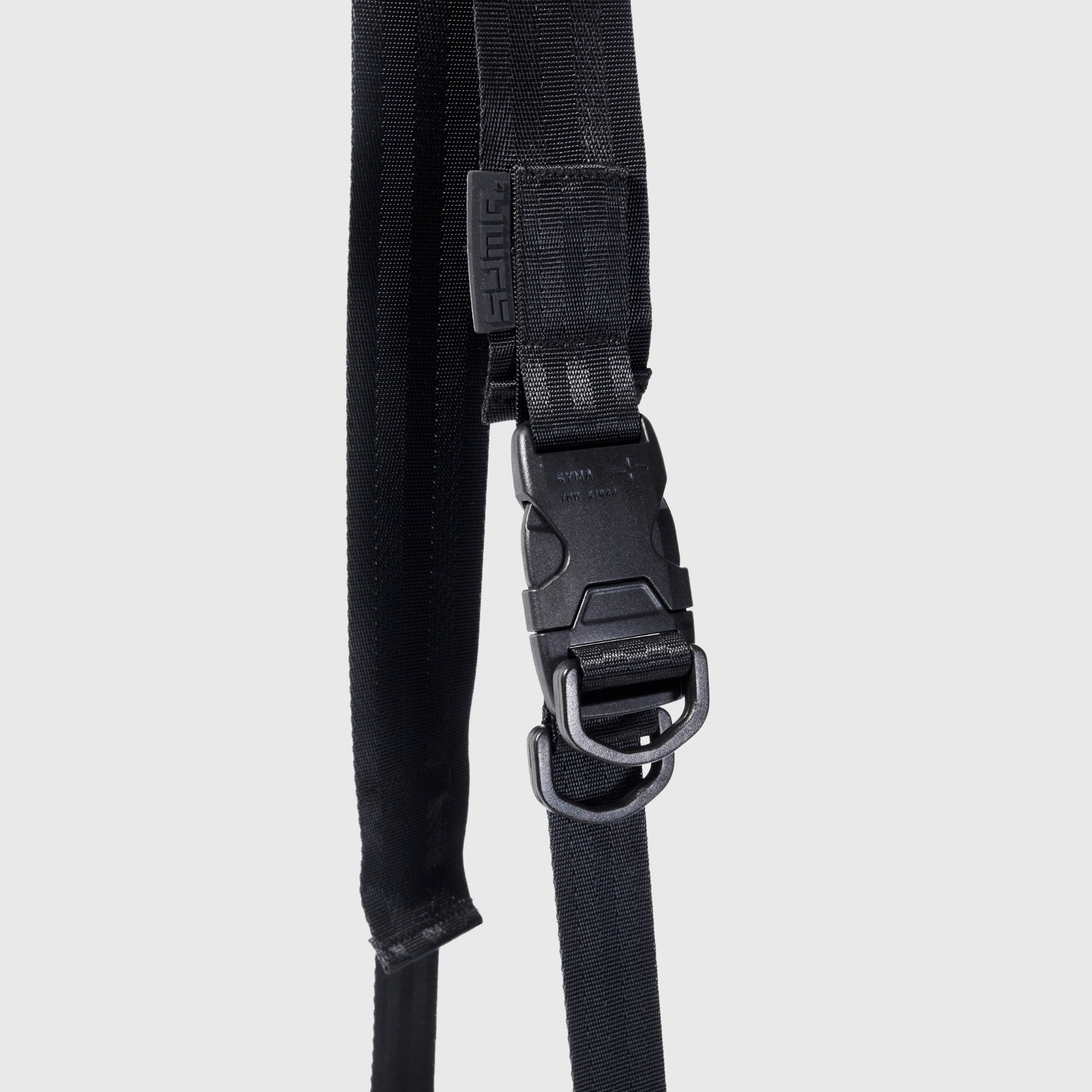 長さ調節が可能なショルダーストラップは、少し幅を大きくとり肩が痛くならない配慮が施され、バックルはSYMA.ロゴが入ったYKK製。
